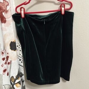 Super chic and classy dark green velvet blazer and skirt set. Both top and bottom are size medium! Skirt has a zip in the back and the jacket has 1 button to fasten in the front. Worn only a hand full of times. Perfect for holiday parties or date nights! 🎄🌃