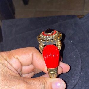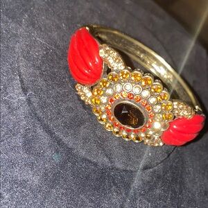 This stunning bracelet features a vibrant red and gold design, perfect for adding a touch of elegance to any outfit. The intricate detailing and bold colors make it a standout piece in any jewelry collection.