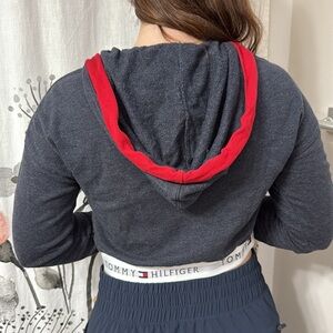 Women’s Tommy Hilfiger Navy and Red V-Neck Crop Top Sleepwear Hoodie. Size S