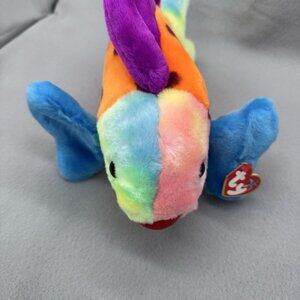 Vtg TY Beanie Buddies Lips Fish 1999 Multicolor Tie Dye Plush Stuffed Animal 13"