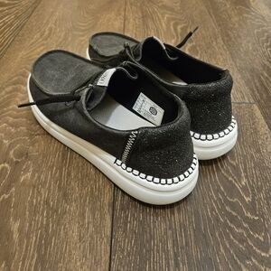 Womens black Hey Dude Wendy Rise sneakers with sparkly heel. Size 8.