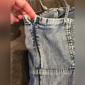 Stylish denim mini dress. Perfect for casual outings. Features adjustable, and removable straps, non-slip strip along the top for strapless wear, and a side zip. From a smoke-free, cat-friendly home. Excellent condition.