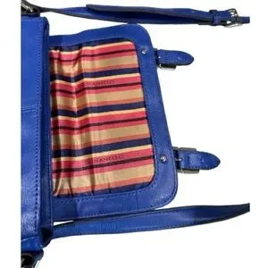 Tignanello Leather Crossbody Bag Blue Adjustable Strap Colorful Striped Lining