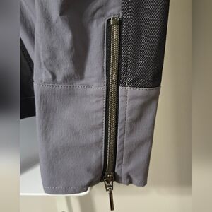 New, chic Anatomie light jacket with mesh panels. Features a sleek gray and black color scheme.
