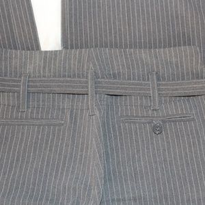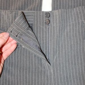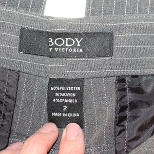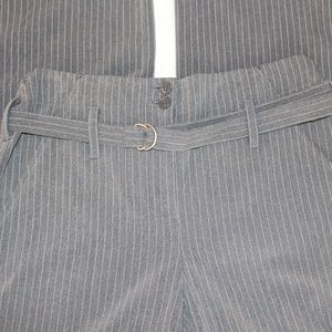 Body by Victoria, gray and white pinstriped belted pants