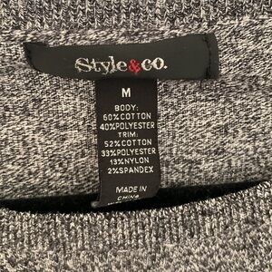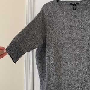 Black marled sweater, 3/4 dolman sleeves, round bottom hem, used but in good condition