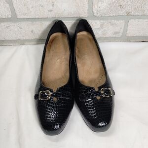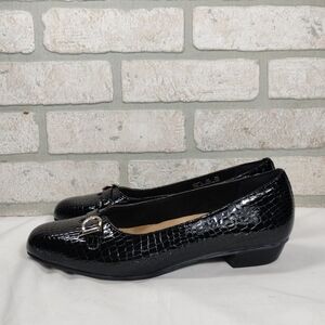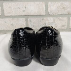 Clarks Caswell Genoa Black Croc Embossed Patent Leather Heeled Flats Size 10