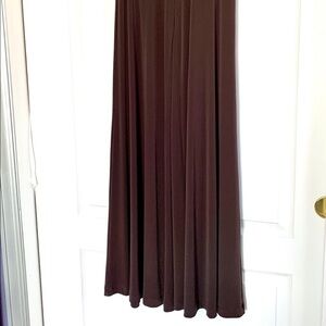 Very Soft Jersey fabric that flows so beautifully for a lovely silhouette!! Near perfect condition! Full length and wide flare leg....ask for measurements if interested. Very stretchy! Chocolate Brown! Wide V Shaped waistband with side cutouts!! Sexy and comfortable! Great with heels of boots!
