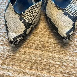 Vince Camuto Black and Cream Snake Print Mules