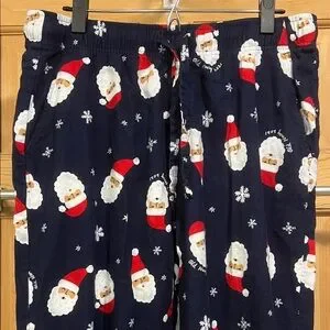 Fun Santa print on navy fabric. Soft and comfortable, and machine washable. Ideal for festive nights. These are great pajama bottoms for the holiday season be the festive dad. These are gently used , still in excellent condition. Comes from a smoke free household.