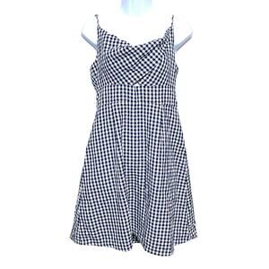 Loft Gingham Plaid Check Blue Checkered White Twist Cutout Front Cami Mini Dress Womens 10 Cowl Neck