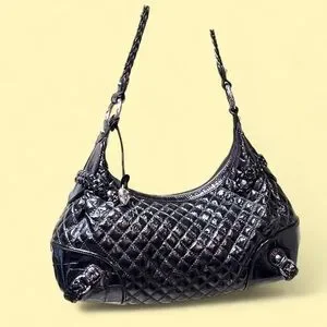 Black quilted patent leather