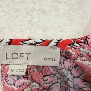 This casual midi dress from LOFT is designed in a vibrant red and white palette, perfect for a relaxed day out. It features a ruffled, tiered skirt that adds a playful touch, complemented by a flattering v-neckline and short sleeves. The notched collar enhances its casual elegance, making it a versatile addition to your wardrobe.
