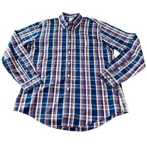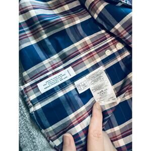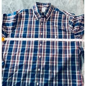 NWOT Brooks Brothers 346 Size Large Slim Fit Polo Plaid Long Sleeve Button Up Shirt Men 100% Cotton Blue White Red Pocket