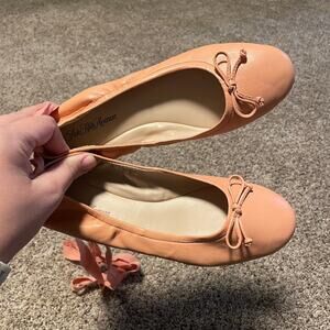 Saks Fifth Avenue SZ 7.5 Ribbon Wrap Up Ballet Flats Salmon Pink Balletcore Girl