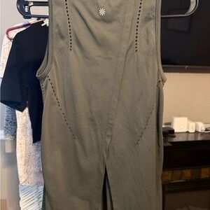 Athleta Laser Cut Mesh Back Tank Top | Size XXS (oversized) | Olive Green