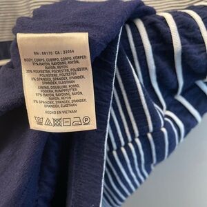 Stylish sleeveless maxi with bold navy and white stripes. Ideal for any occasion.