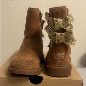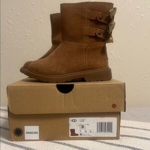 Chic UGG boots for kids. Features stylish buckle accents. Ideal for any occasion. Worn once inside-like New.