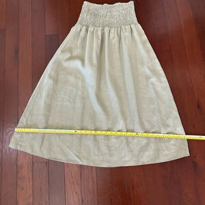 Little Lies Artie Shirred 100% Linen Midi Skirt sz XS color tan urbanoutfitters