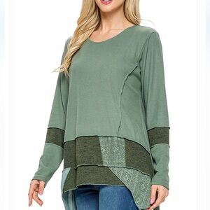 Yak & Yeti Green Tunic Top Boho Patchwork Casual Lace. NWT. Various Sizes 23876
