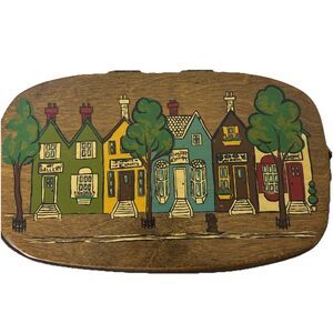 Vintage Caro Nan Main Street Basket Purse Lined Signed Hand Painted Cottagecore