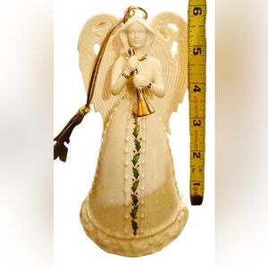 The Lenox 2020 Holiday Angel Bell Ornament is part of an annual holiday series. 6" x 3” collectible ornament featuring an angel design. Made by the renowned brand Lenox, this ornament is part of a holiday-themed collection and includes an angel playing a trumpet. It is a perfect addition to any holiday decor or ornament collection, adding a touch of elegance and charm to the festive season.