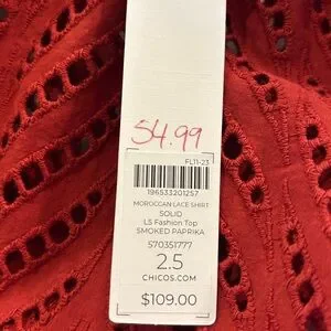 NWT Chico’s Moroccan lace shirt color smoked paprika size 14 (2.5)