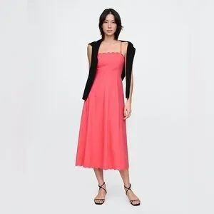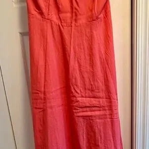 NWOT Gap linen blend coral midi dress, Scalloped square neck (never worn) size S