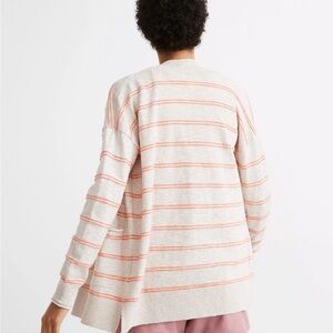 Chic striped cardigan by Madewell. Soft cream with coral accents. Ideal for layering.