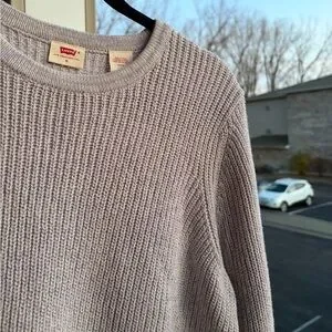 🆕 Levi’s Lavender Waffle Knit Sweater Soft Cotton Blend Cozy Ribbed Knit Size M