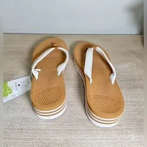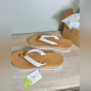 NWT KUAILU Sandal Flip Flop Thong Yoga Cushion Elegant White Tan Women Size 8