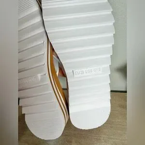Step out in style with these elegant women's sandals. Featuring chic white straps and a comfortable tan sole, these sandals are perfect for any casual outing.