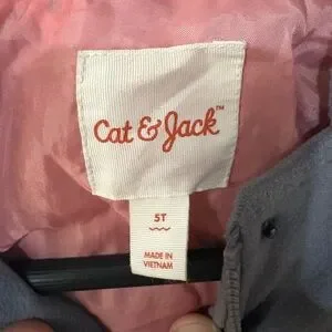 Adorable Cat & Jack gray fleece jacket featuring a bunny face, 3D ears, and a fluffy tail on the back. Soft pink lining for extra warmth and comfort. Front pockets and zip closure make it both cute and functional — perfect for spring or fall weather.