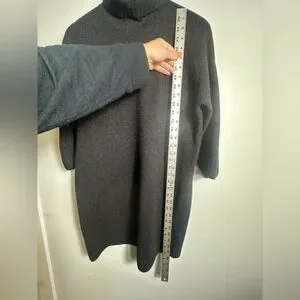This elegant black turtleneck dress is perfect for any occasion. Its sleek design offers a timeless look, making it a versatile addition to your wardrobe.