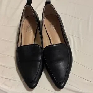 Sleek black leather flats. Timeless design. Ideal for everyday wear.