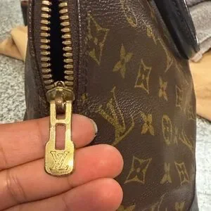 Stylish Louis Vuitton tote with signature monogram. Deep brown with gold details.
