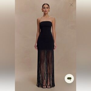 Chic strapless design. Elegant fringe detail. Perfect for evening wear.