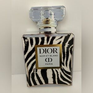 Elevate your space with this stunning Dior “Noir et Blanc” inspired perfume bottle décor piece.