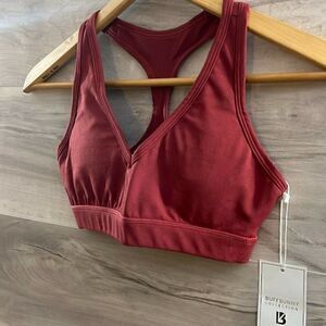 Buffbunny Collection Womens Burgundy Racerback Stretch Sports Bra Size XXS
