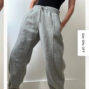 Super cute and comfy sweatpants! Size tag is faded but these are size medium. A little baggy on me but they could fit a variety of sizes depending on how fitted you like it. I am 130 pounds and 5’6 for reference. The color is Heather grey which has a bit of minor piling.