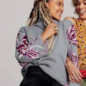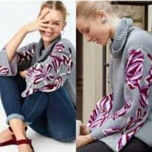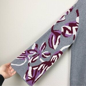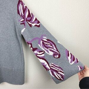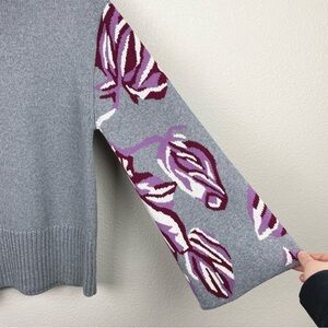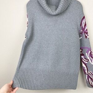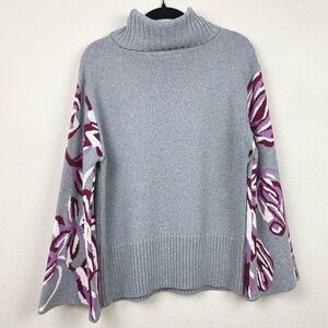 Cabi Women's Medium Eden Turtleneck Pullover Sweater Bell Statement Sleeves Gray Chunky Knit Floral Loose Fit Casual