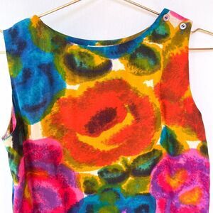 Vintage Kehaulani Hawaii Colorful Floral Sleeveless Shift Dress