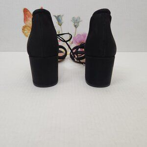 Gianni Bini Size 10 Ankle Tie Block Heel Black Suede Rhiaann Women's Sandals