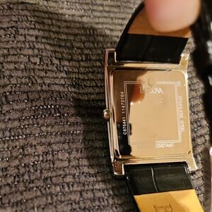 Elegant unisex Bulova watch C875441 with genuine black leather strap. Perfect for any occasion. Gently used, like new condition.