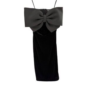 Badgley Mischka Black Strapless Velvet Dress W/ Oversized Bow Detail Size 6