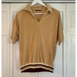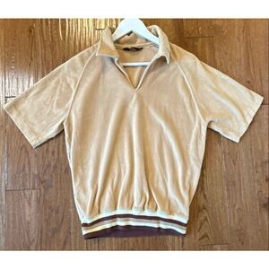 Vintage 70’s RARE Levi’s Velour tan collared polo shirt size Large