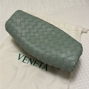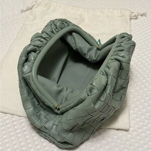 Intrecciato-woven buffed lambskin pouch in green (green teen pouch). Gathering throughout and only used twice. Comes with dust bag!