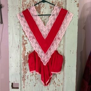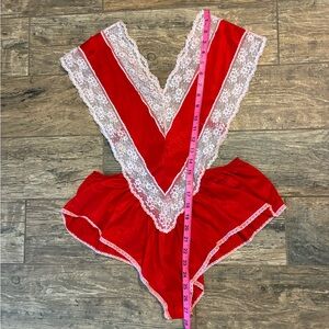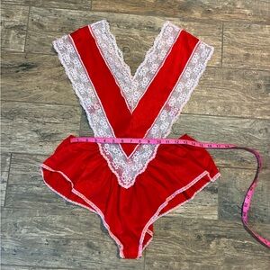 Women’s VTG red and white lace naughty Mrs claus bodysuit made in the USA Preloved good condition #lingerie #christmas #mrsclaus