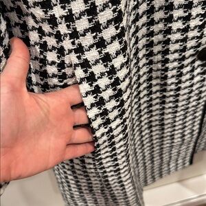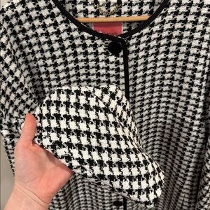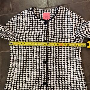 Kate Spade Women’s Houndstooth Tweed Coat Black White Crewneck Pea Coat Size XL