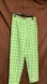 Bold lime-green pants with a striking checkered design. These measure at 40” in length, 27” inseam, and are high waisted with one button and zipper.